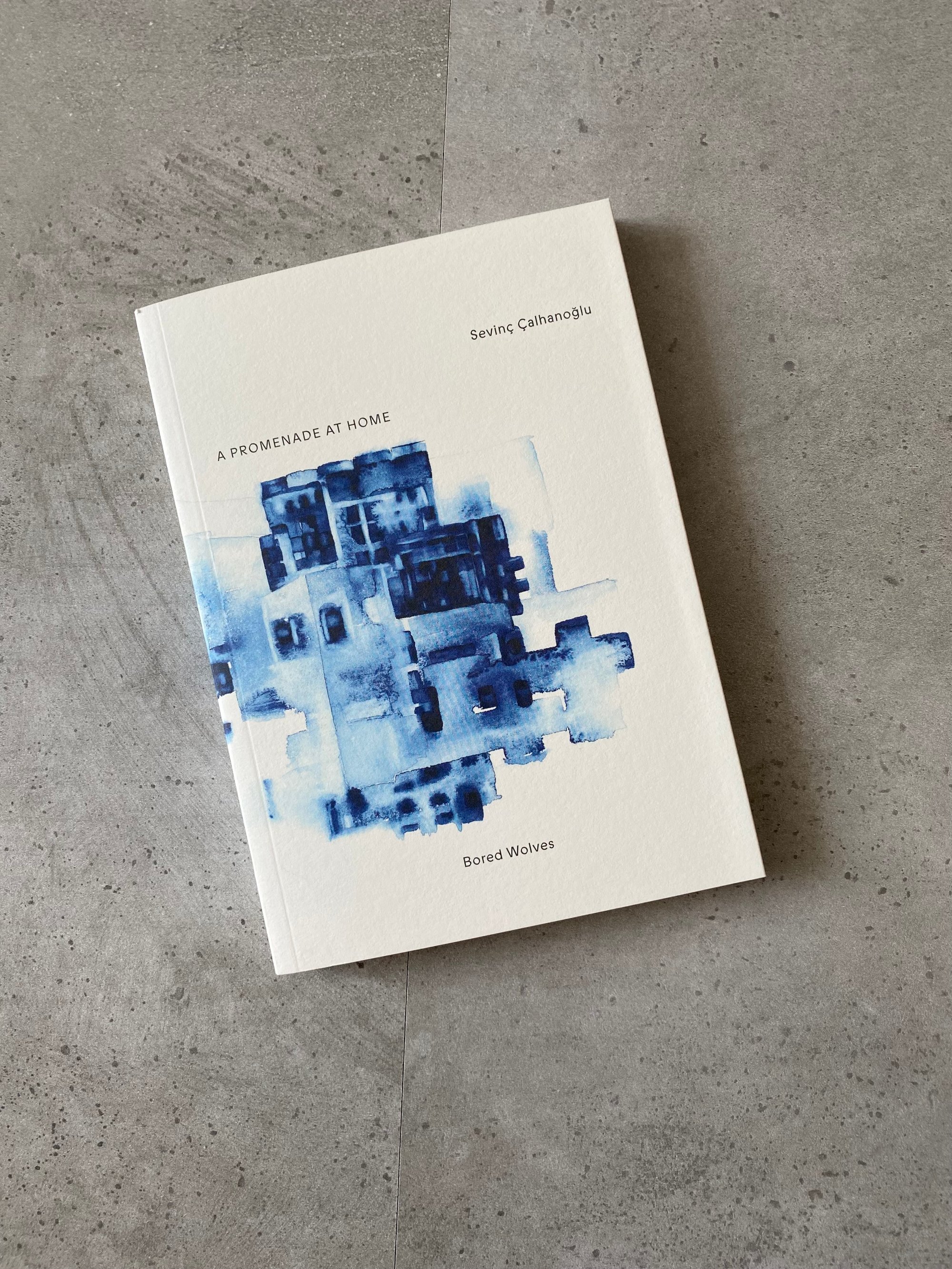 A Promenade at Home is comprised of two self-contained poetic works, each illustrated by Sevinç with its own set of art: the titular “A Promenade at Home,” a weave of poems, fragments, and performative dialogue, arranged together with abstract monochromatic watercolors; and the previously unpublished “Melancholia: An Inventory,” a prose-poetry hybrid of domestic diary and institutional guided tour, illustrated with drawings of household artifacts.
