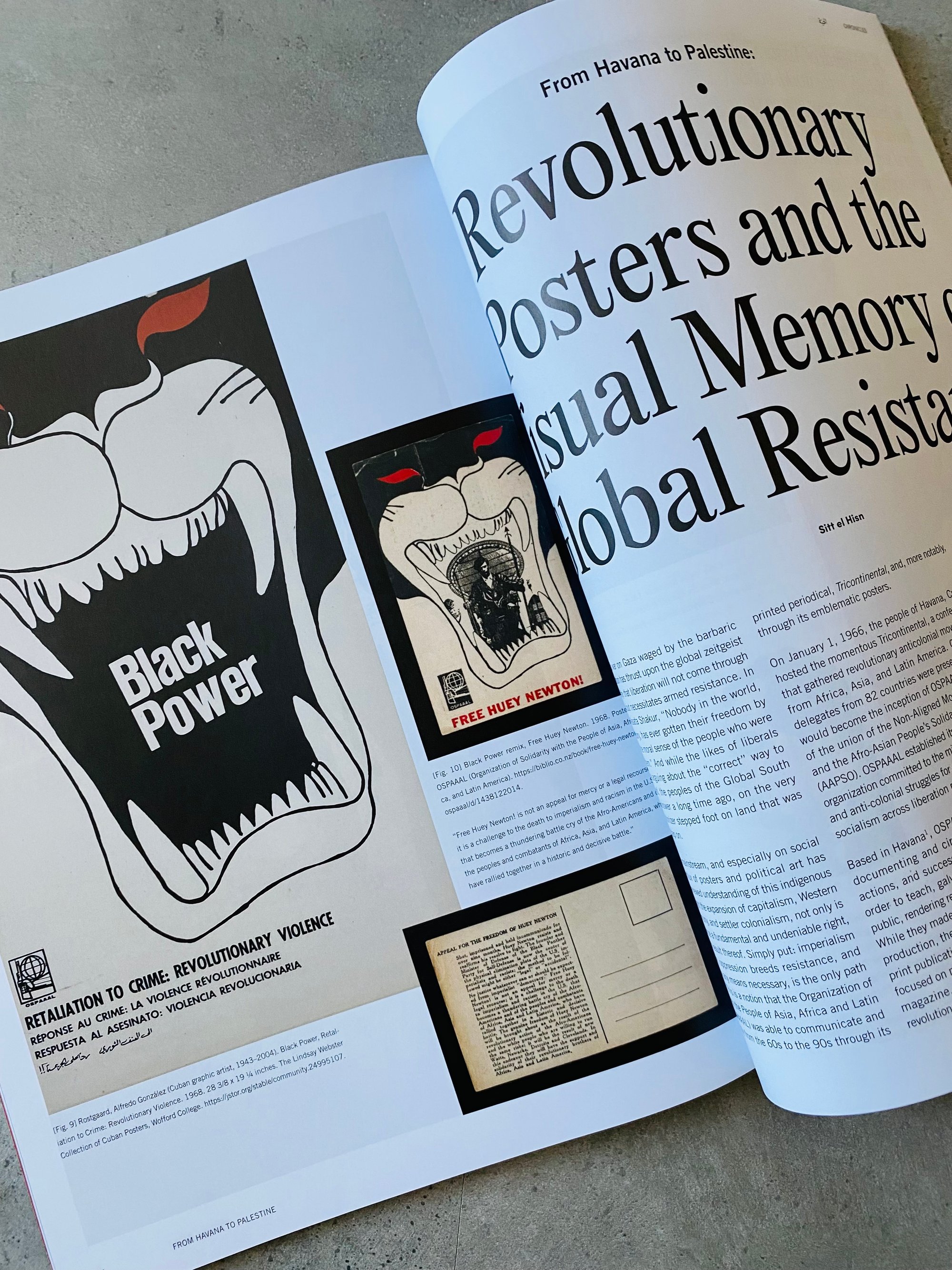 Also included is a conversation with Saliah, a DJ and producer shaping a distinctly regional sound within global club culture. A feature on the revolutionary archive of OSPAAAL (The Organization of Solidarity with the People of Asia, Africa, and Latin America) offers a visual and political history of global anti-imperialist struggle. Other contributions explore a personal reckoning on womanhood, exhaustion, and devotion in a world that keeps demanding more; the political implications of de-racing hair; and a poetic dispatch from Kashmir to Gaza, mapping pain, kinship, and the enduring will to be free.