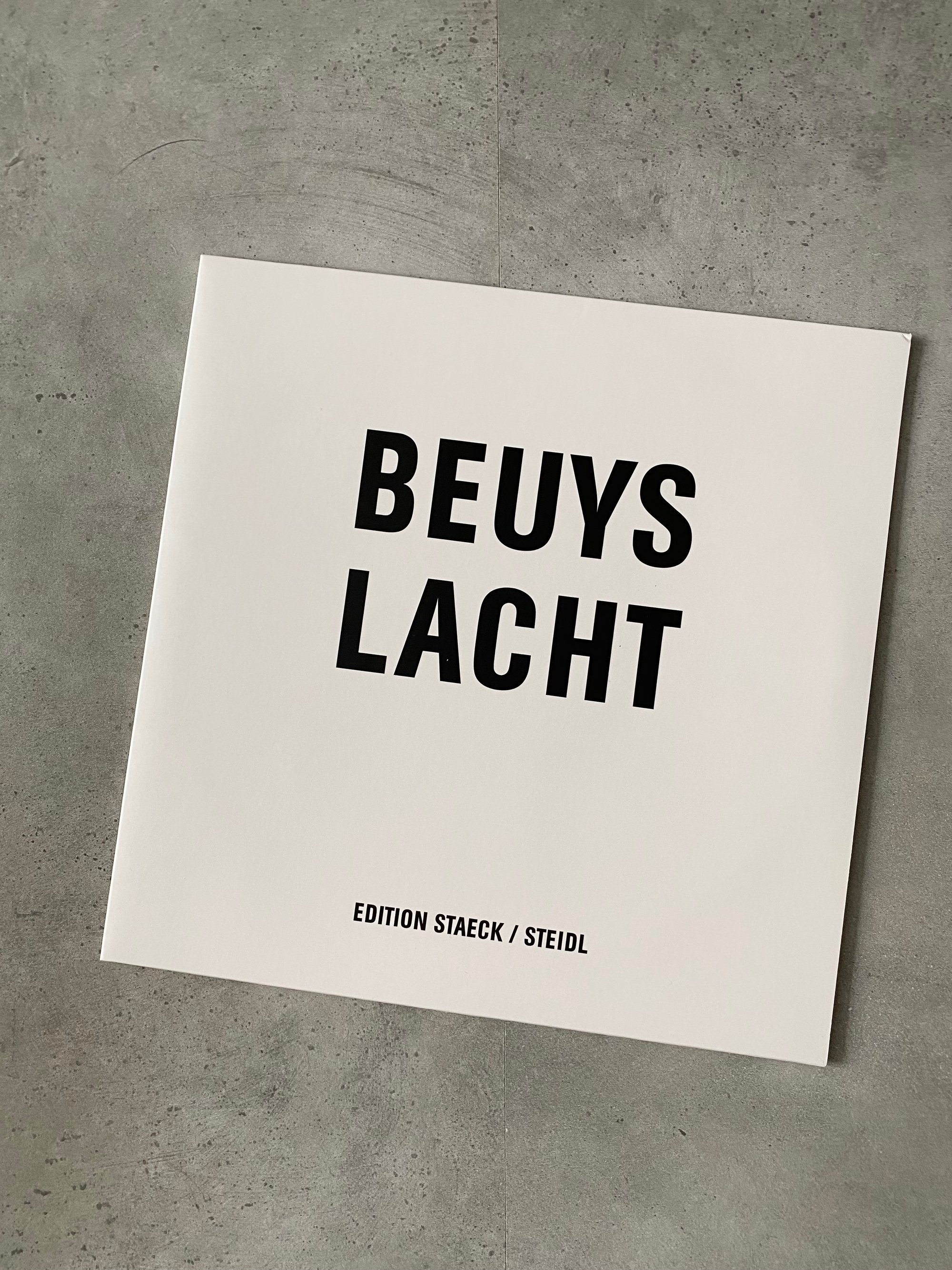 In early 1974 Joseph Beuys, Klaus Staeck and Gerhard Steidl sat in a Boeing 747 from New York to Düsseldorf, returning home after Beuys’ American tour. The trip had been a controversial success, and its every stage carefully documented by Staeck and Steidl in videos, photographs and audio—their trusty Sony TC-50 cassette recorder was always at Beuys’ side during his lectures, conferences and workshops. To relieve the boredom of the flight, the three listened to some of the recordings and Beuys surprisedly noticed just how much he laughed: why not edit this laughter into a single, surreal track?