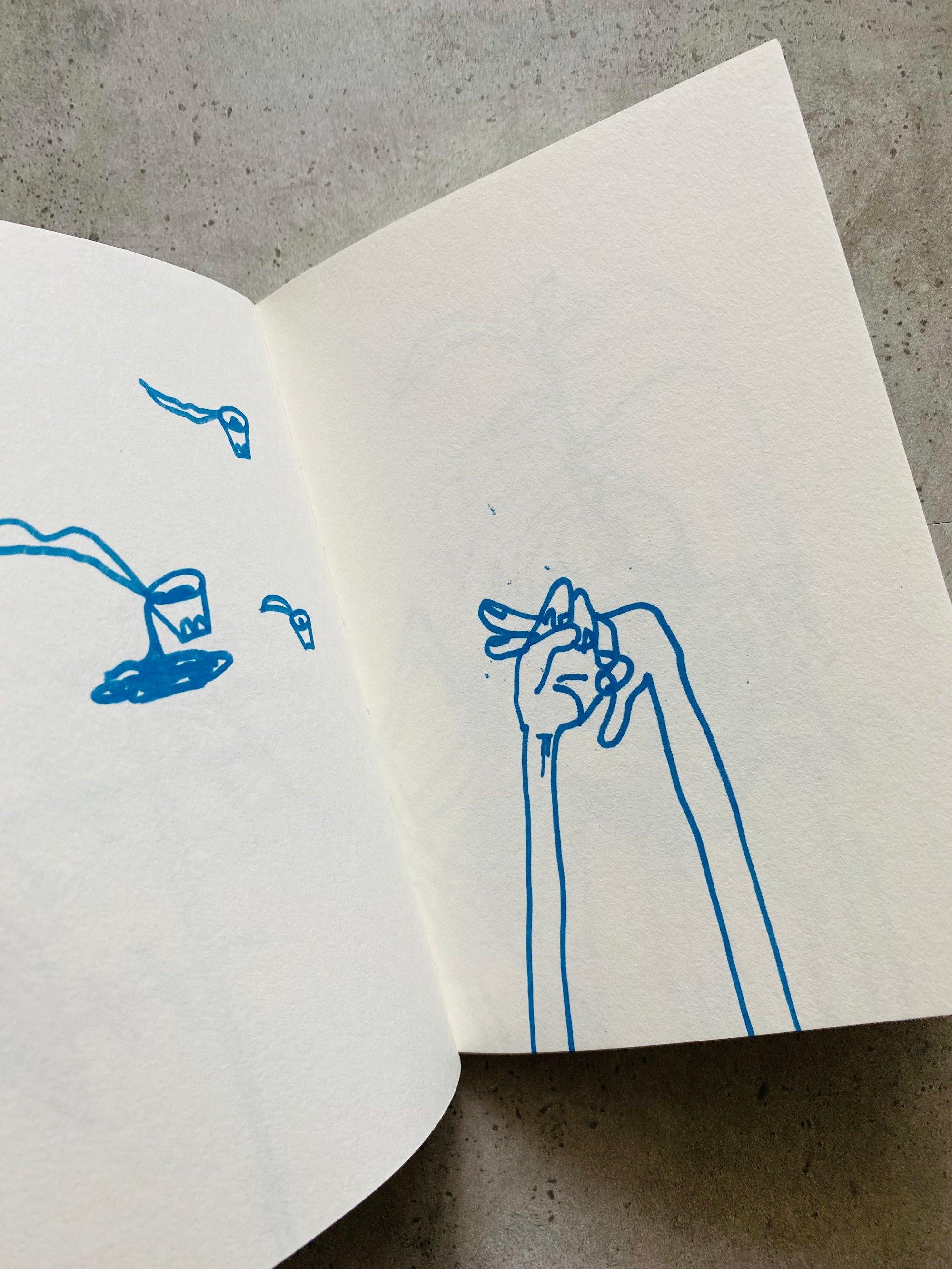 When open-ended plot lines left him adrift, he snapped up a pad from the newsstand, picked up a paint marker the blue of the latitude, and started feverishly drawing.