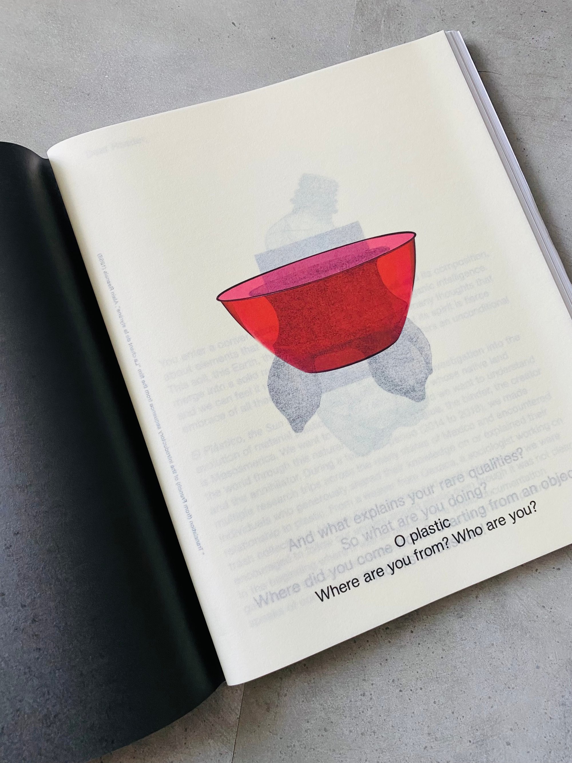 This publication El Plástico, the Sun that lives inside the Rock is an observation on evolution of material plasticity, it is a story about plastic whose native land is Mesoamerica. It explores the past, present and future of plastic through encounters with various people — a weaver from Oaxaca, a taxi driver, a sociologist working on trash collection in Mexico City and the owner of a small family-run plastic factory. The book contains a polymorphous project resulting from several years of research by artist Viktorija Rybakova and designer Goda Budvytytė, it also includes a conversation between philosophers Kristupas Sabolius and Catherine Malabou, and essays by Post Brothers and Chris Fitzpatrick.