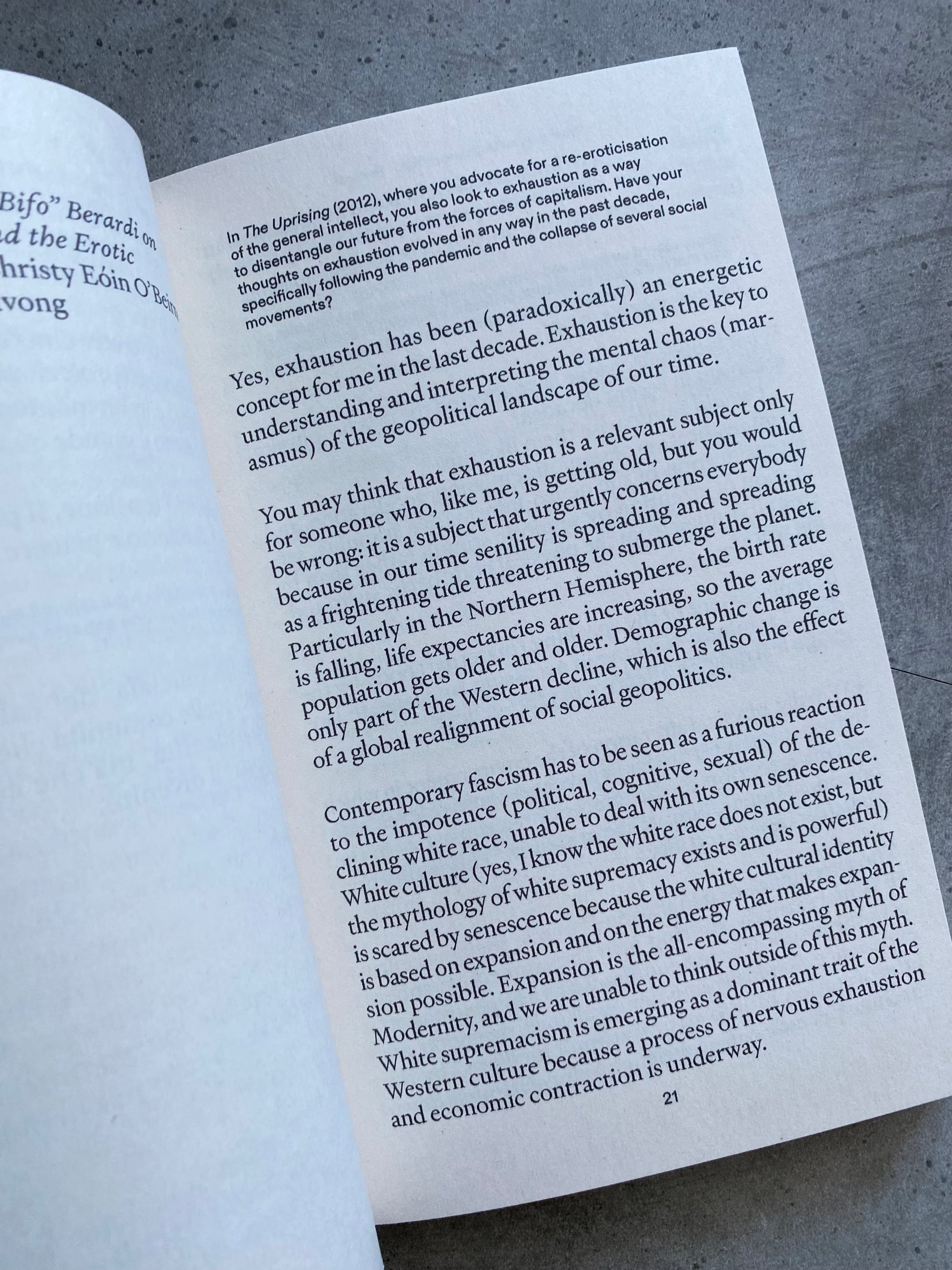 The edition is the second half of a two-fold manifestation: an exhibition focusing on the re-eroticisation of (political) bodies, and this book, which includes texts and visual works regarding the revitalisation of language through poetry.
