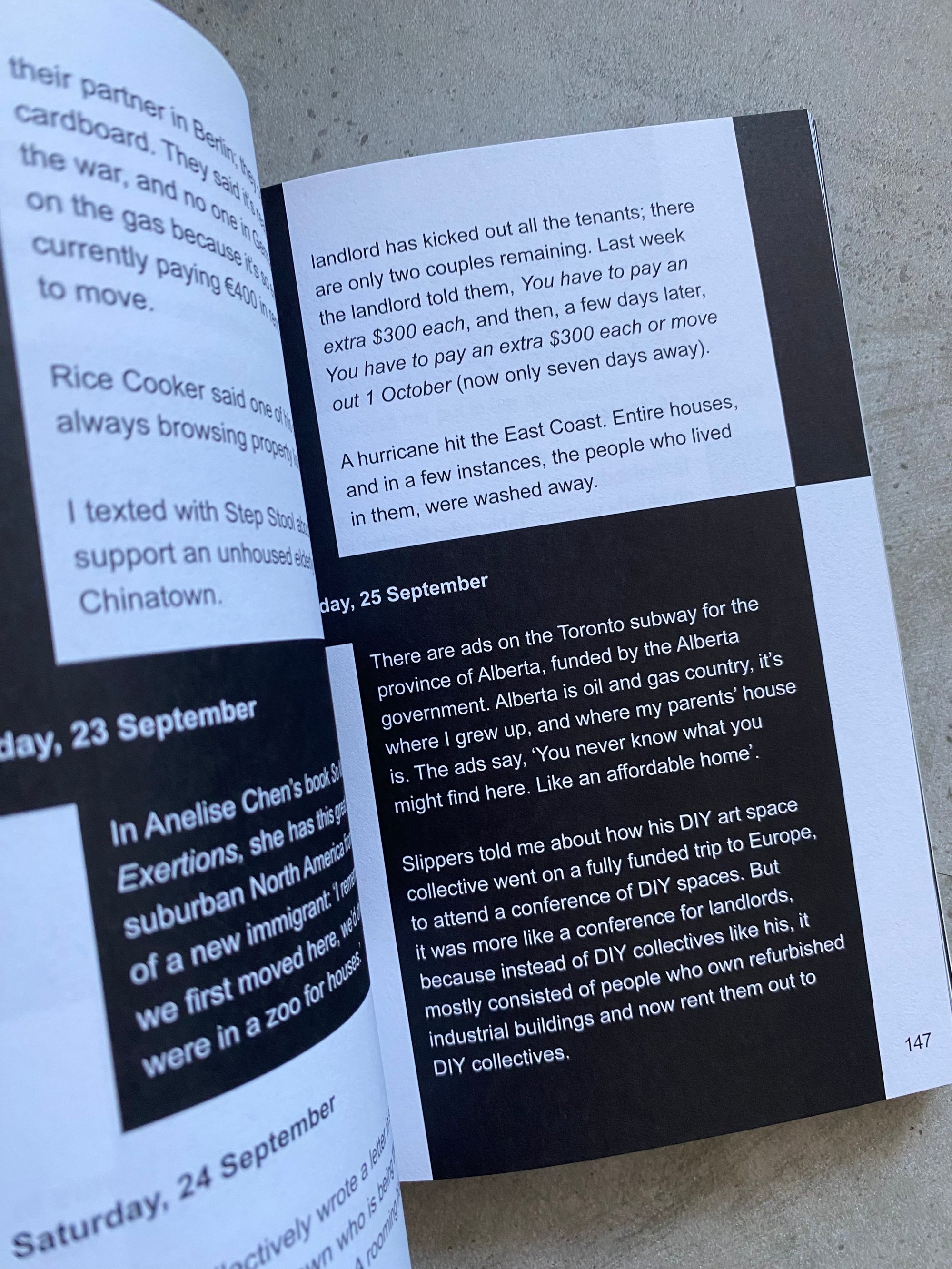 From December 2021 to December 2022, artist and writer Amy Ching-Yan Lam kept a record of each time real estate, property or housing came up in conversation. She called this the Property Journal.