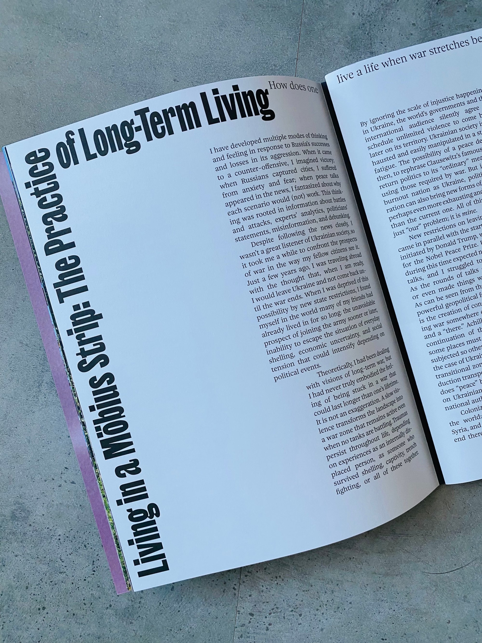 Featuring diverse voices from Yemen to Ukraine, from Georgia to Germany, the new issue of Solomiya focuses on the conditions of the present that shape the paths to possible futures. Texts and artistic reflections from 21 artists, academics, and journalists navigate the dead ends of communication and confront the paradox of imagining future realities in the midst of ongoing war. They create space for doubt, contradiction, and the possibility of error through testimonies from soldiers and expressions of bodily experience—from dancers, imaginary chess pieces, dopamine-fueled superheroes, astronauts, and dried watermelons.