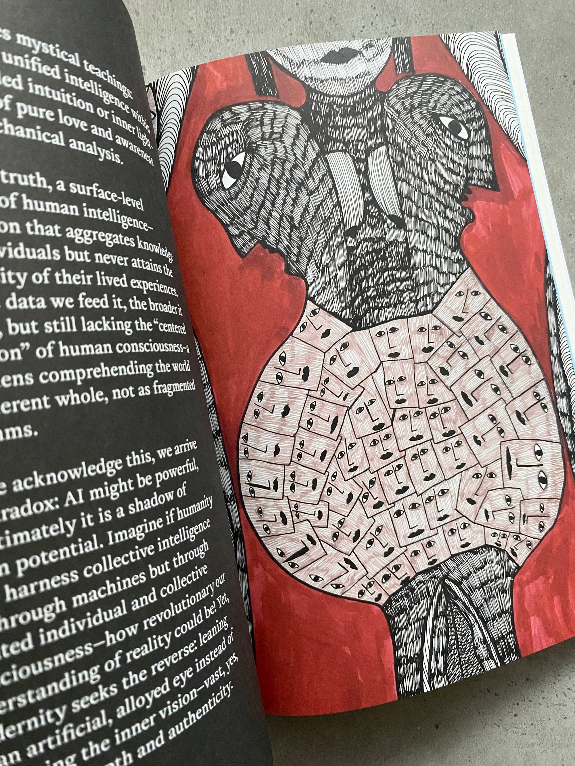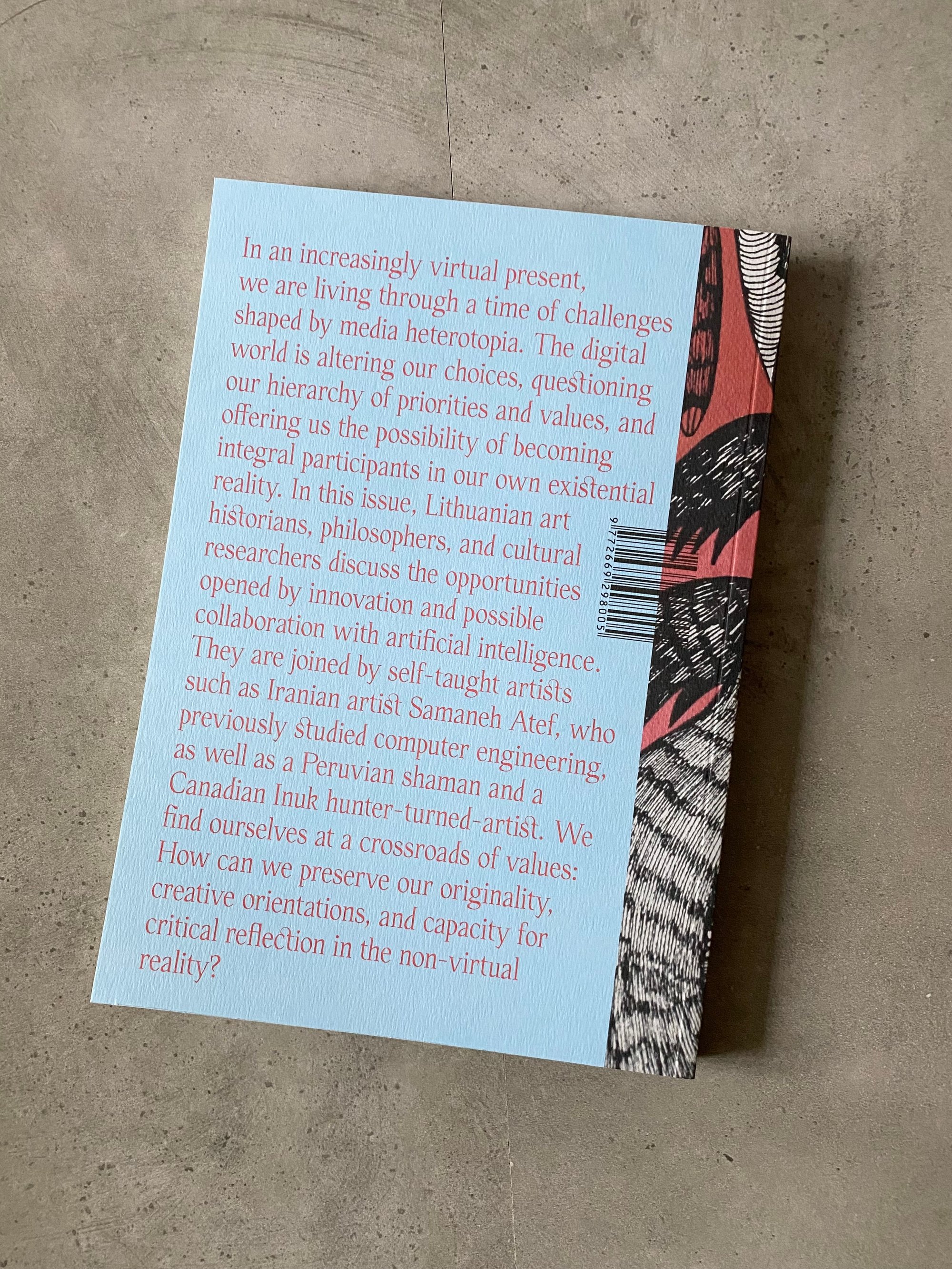In an increasingly virtual present, we are living through a time of challenges shaped by media heterotopia. The digital world is altering our choices, questioning our hierarchy of priorities and values, and offering us the possibility of becoming integral participants in our own existential reality. In this issue, Lithuanian art historians, philosophers, and cultural researchers discuss the opportunities opened by innovation and possible collaboration with artificial intelligence. They are joined by self-taught artists such as Iranian artist SAMANEH ATEF, who previously studied computer engineering, as well as a Peruvian shaman and a Canadian Inuk hunter-turned-artist.
