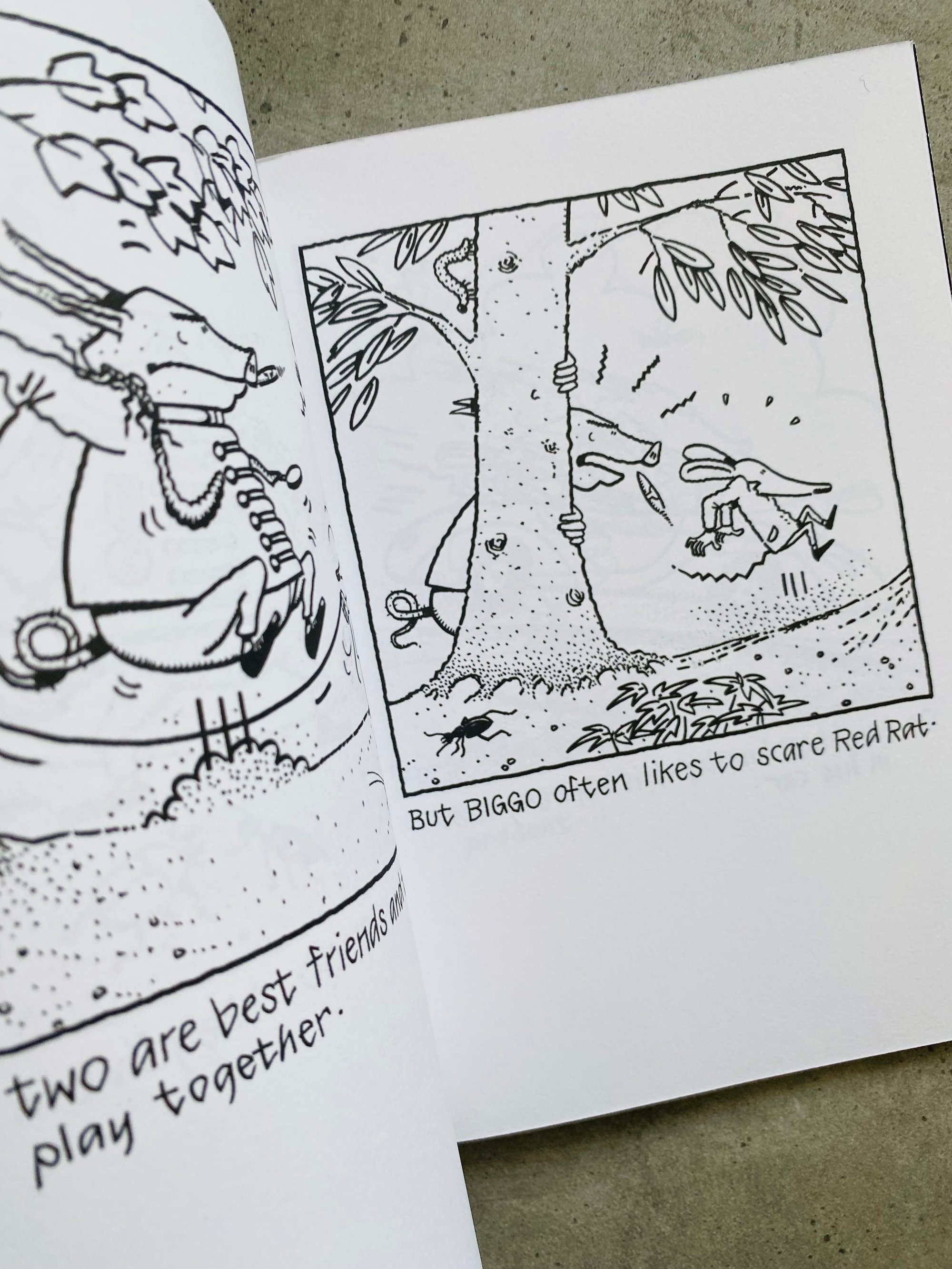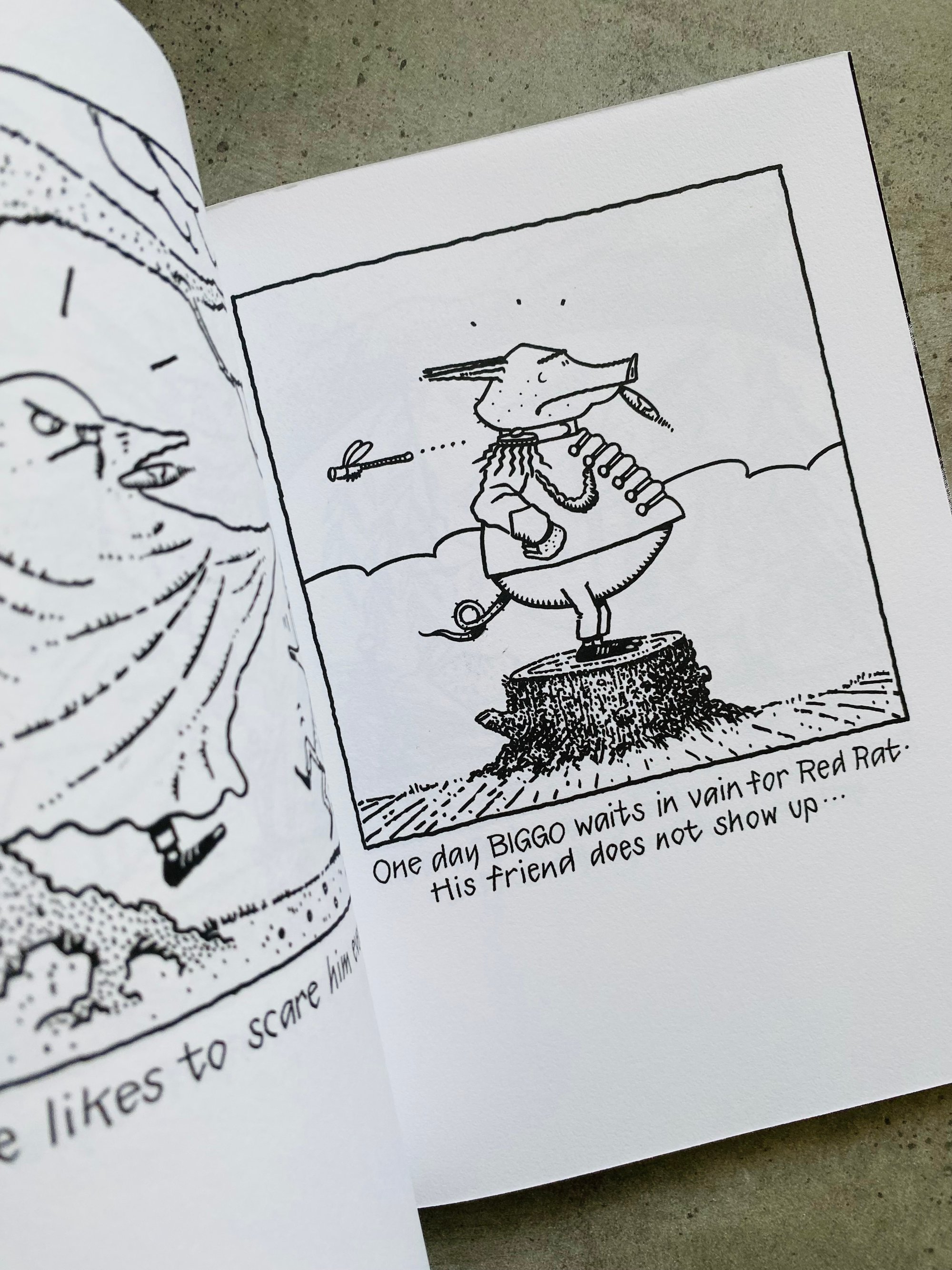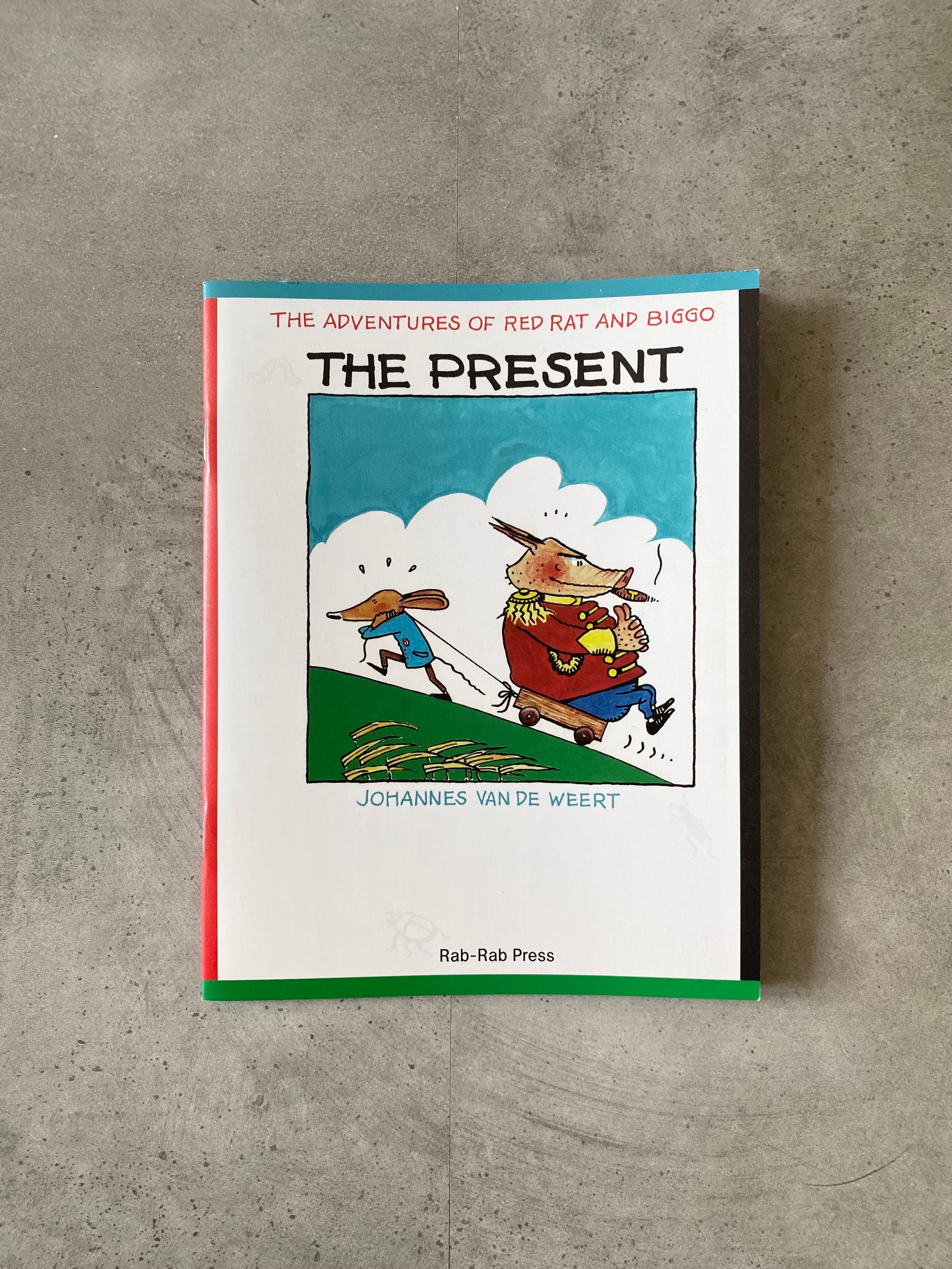 The Adventures of Red Rat and BIGGO — The Present is a remake of Bram konijn en Piet de muis [Bram the Rabbit and Piet the Mouse], a 1982 children’s book by Johannes van de Weert, a veteran of the Dutch punk underground who played with Rondos and The Ex, and who was the force behind Red Rat and Raket editions.