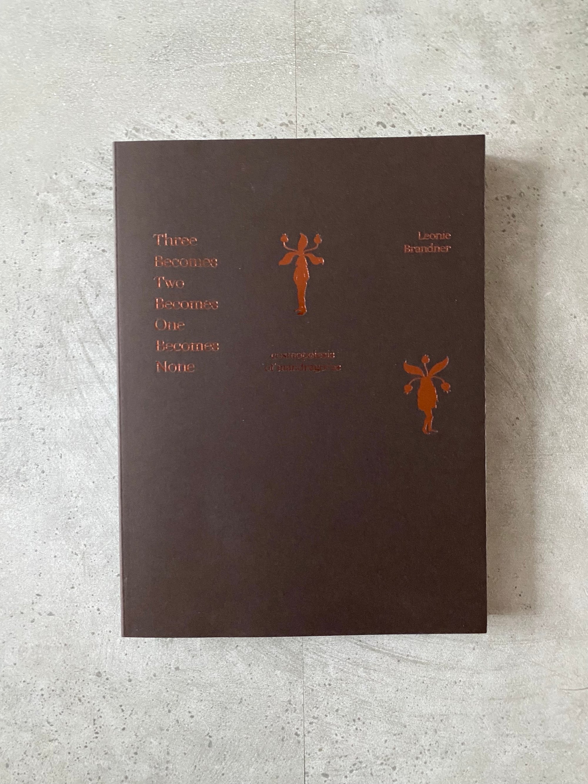 Three Becomes Two Becomes One Becomes None explores the medicinal and magical mandragora plant, and the many stories that grew around it across history. Artist Leonie Brandner's writing moves from the beginning of recorded storytelling to ancient Egyptian and Greek mythology, tracing the lines the mandragora has left behind in medicinal books, folklore and eventually the impact the plant had in the hunt on so-called witches in the Middle Ages. Gently weaving her own perception and encounters with the plant through her rigorous historical research, Leonie Brandner creates a kaleidoscopical image of human-plant-imaginations across time.